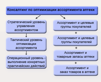 Именно поэтому тренинги для аптек по этой теме должны быть развернутыми и рассматривать не просто оптимизацию ассортимента товаров в аптеке как таковую, саму по себе, а в её связи с: